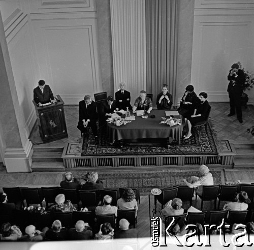 Jubileusz 50-lecia pracy naukowej prof. dr Marii Ossowskiej, n/z profesor Maria Ossowska (w głębi, przemawia).