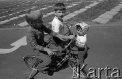 Czerwiec 1976, Zielona Góra, Polska. Dzieci z rowerami na ulicy. Fot. Romuald ...