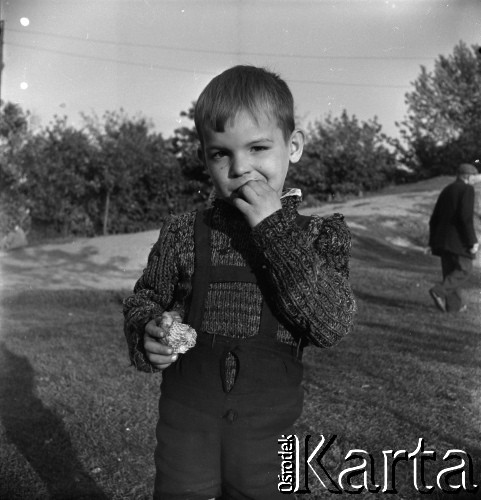 Chłopiec z kawałkiem słonecznika na Żoliborzu.