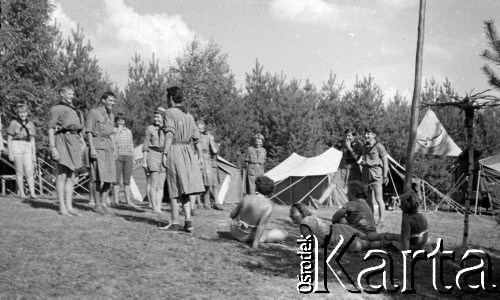 Obóz harcerzy Hufca Żoliborskiego, n/z apel w przebraniach.