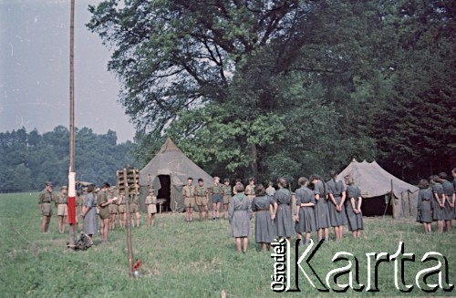 Obóz harcerzy Hufca Żoliborskiego, n/z przedstawienie teatralne dla miejscowych dzieci.