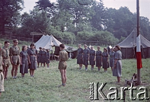 Obóz harcerski drużyny 121 z Żoliborza, n/z apel.