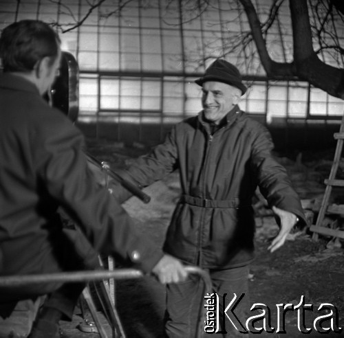 Plan zdjęciowy filmu "Gra", n/z Wiesław Gołas i Jerzy Kawalerowicz.