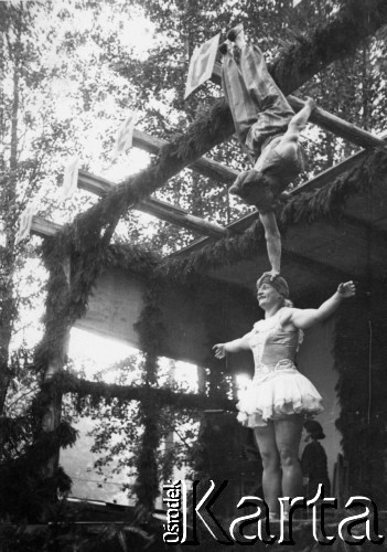 Kwatery lotników niemieckich w lasach koło Smoleńska, występ frontowego teatru.