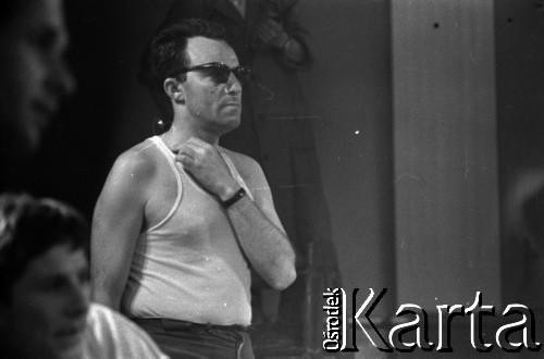Plan zdjęciowy filmu "Zezowate szczęście", n/z reżyser filmu Andrzej Munk, z lewej u dołu Roman Polański.