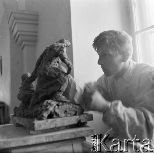 Uczennica Państwowego Liceum Sztuk Plastycznych w pracowni.