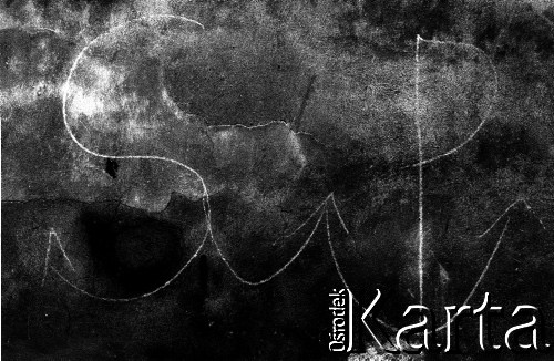 Stan wojenny, napisy i hasła popierające podziemną Solidarność. N/z napis "Wrona skona" i "WRON won za Don".