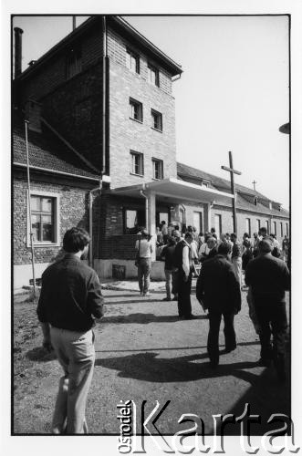 Uczestnicy Międzynarodowej Konferencji Praw Człowieka, odbywającej się w dniach: 25-28 sierpnia 1988 roku w Krakowie, na terenie KL Auschwitz Birkenau (przed kościołem muzealnym).