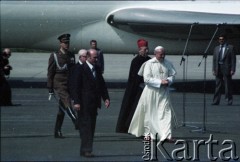 6.09.1982, Warszawa, Polska. Pogrzeb Władysława Gomułki na Cmentarzu Wojskowym na Powązkach. Premier Wojciech Jaruzelski (w mundurze), Henryk Jabłoński - przewodniczący Rady Państwa (obok Wojciecha Jaruzelskiego z prawej). Fot. Romuald Broniarek, zbiory Ośrodka KARTA