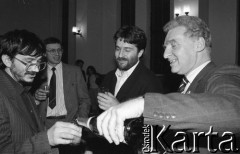 26-27.01.1991, Warszawa, Polska. I Krajowy Zjazd Ruchu Obywatelskiego - Akcja Demokratyczna (ROAD). Ludwik Turko, Władysław Frasyniuk, Roman Traczyk (z tyłu) podczas przerwy w obradach. Fot. Mieczysław Michalak, zbiory Ośrodka KARTA