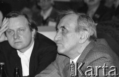 8-9.03.1981, Poznań, Polska. Zjazd zjednoczeniowy NSZZ "Solidarność" RI w gmachu Opery Poznańskiej. Siedzą od lewej: Gabriel Janowski, Jan Antoł, Jan Kułaj i Piotr Baumgart. Fot. Lech Ścibor-Rylski, zbiory Ośrodka KARTA/Independent Polish Agency (IPA) , przekazał Józef Lebenbaum
