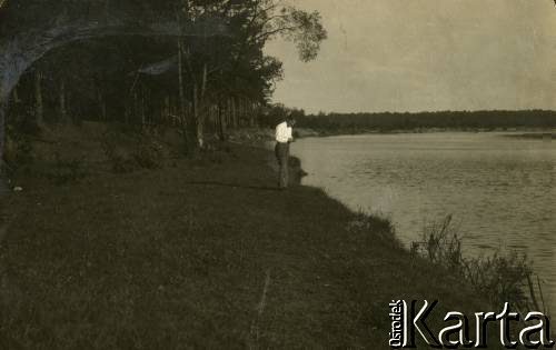 Matka Larysy Zajączkowskiej Elżbieta (z lewej) z przyjaciółmi nad brzegiem rzeki.