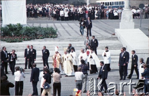 Trzecia pielgrzymka papieża Jana Pawła II do Polski w dniach 8-14 czerwca 1987 roku. Ojciec Święty na placu Defilad kieruje się w stronę ołtarza, gdzie będzie przewodniczył mszy świętej.