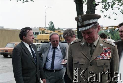 Przedstawiciele władz na terenie budowy I linii metra na odcinku Pole Mokotowskie - Politechnika. 2. od prawej Marian Woźniak - I sekretarz Komitetu Warszawskiego PZPR, obok Jerzy Twardo - główny inżynier Generalnej Dyrekcji Budowy Metra.
