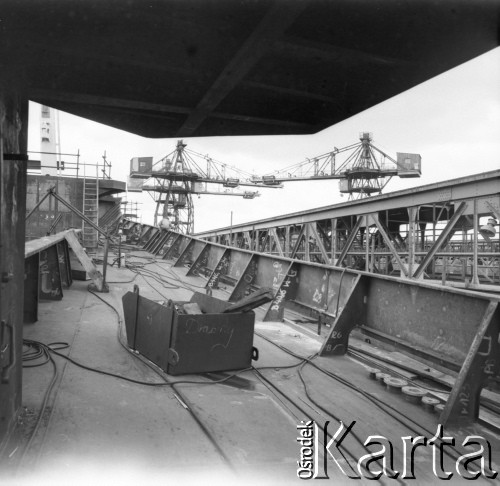 Stocznia Gdańska (od 15.04.1967 Stocznia Gdańska im. Lenina). Budowa statku na stoczniowej pochylni B3.