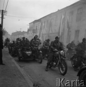 26-30.09.1956, Polska. Uczestnicy motocyklowego rajdu TPPR Warszawa-Poronin przejeżdżają ...