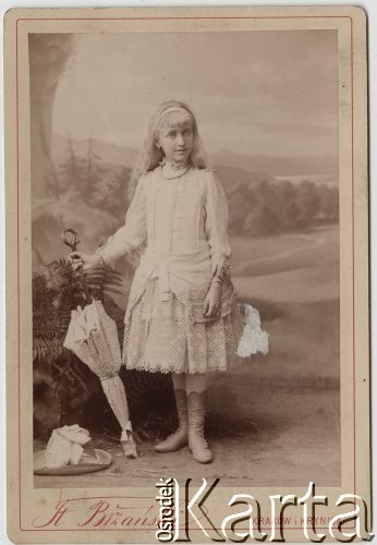 Ok. 1880, Kraków lub Krynica, Austro-Węgry. Zofia Szwejkowska, portret w białej sukience ...