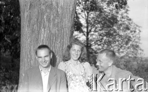 Karol Świeczewski (1. od lewej) z nieznanymi ludźmi. Fotografia wykonana przez jego żonę Marię Świeczewską. Oboje po wojnie wyemigrowali do Argentyny. Małżeństwo przyjaźniło się z pisarzem Witoldem Gombrowiczem.