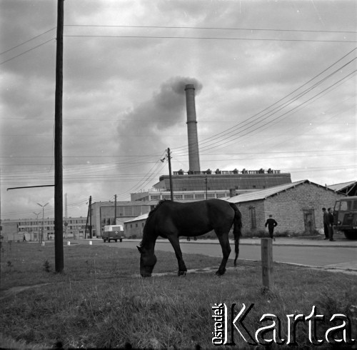 Koń biegnie w okolicy elektrociepłowni na Żeraniu.