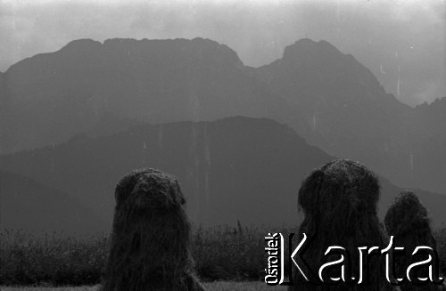 Krajobraz Podhala, w tle Tatry i Giewont.