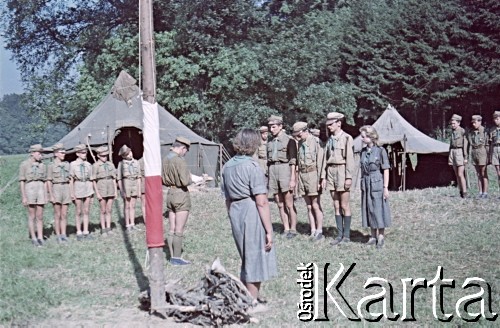 Obóz harcerski drużyny 121 z Żoliborza, n/z harcerze myją zęby.
