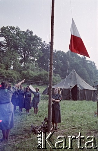 Obóz harcerski drużyny 121 z Żoliborza, n/z apel.