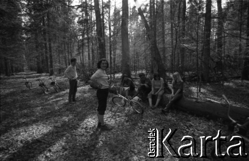 Uczestnicy wycieczki rowerowej w Puszczy Białowieskiej.