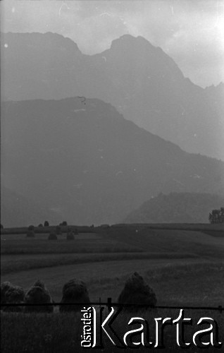 Krajobraz Podhala, w tle Tatry i Giewont.