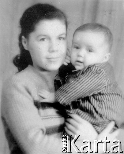 Teresa Sworobowicz z synem Wacławem - fotografia do paszportu.