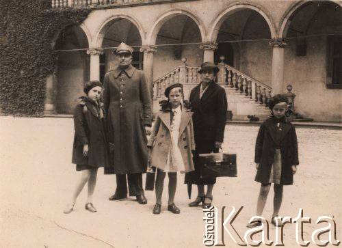 Dziedziniec Zamku Królewskiego na Wawelu, w środku stoi Alicja Godowska.