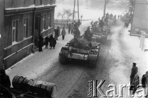 Wprowadzenie stanu wojennego - przejazd kolumny wojsk z garnizonu w Sulechowie ulicą Świerczewskiego (obecnie Senatorska). Zdjęcie wykonane w godzinach przedpołudniowych z okna mieszkania prywatnego autora.