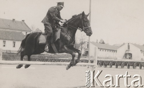 Na koniu siedzi kapitan Wojska Polskiego Marian Bielecki, więzień obozu jenieckiego w Starobielsku, zamordowany w Charkowie w 1940 r.