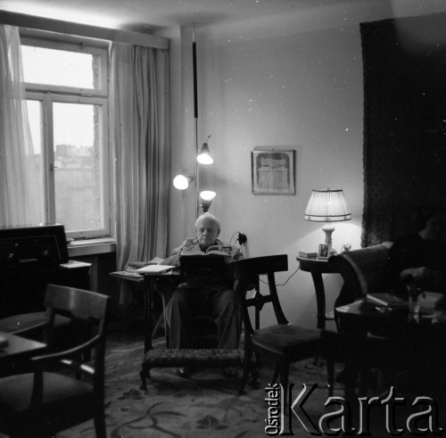 Pisarz, dziennikarz, reportażysta i publicysta Melchior Wańkowicz w swoim mieszkaniu a ulicy Puławskiej 10/35.