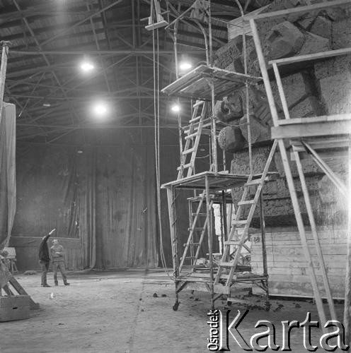 Praca nad Pomnikiem Obrońców Wybrzeża, który w 1966 roku stanął na Westerplatte. Przy rusztowaniu Franciszek Duszeńko, jeden z autorów projektu.