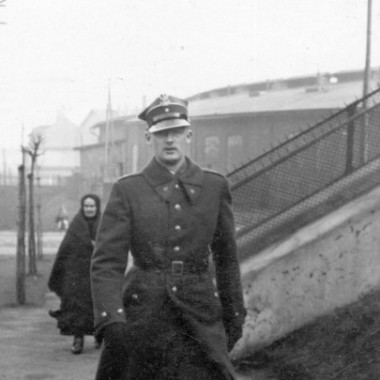Fotografia przedstawia Piotra Friebe, podporucznika rezerwy, z zawodu nauczyciela a następnie, po skończeniu kursów, instruktora Straży Pożarnej. Aresztowany 17.09.1939 roku, jeniec obozu w Starobielsku, zamordowany w Charkowie w 1940 r. Zdjęcie udostępniła Matylda Szyja.