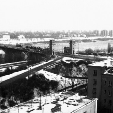 Fotografia z 13.12.1981 roku dokumentuje wprowadzenie stanu wojennego w Warszawie i zablokowanie Mostu Poniatowskiego przez wojsko. Zdjęcie wykonała Barbara Pacek.