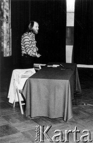 Wykład Mirosława Chojeckiego na temat wydawnictw niezależnych, Dom Kultury na Żoliborzu.