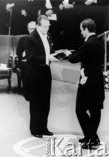 Czesław Miłosz odbiera literacką Nagrodę Nobla.