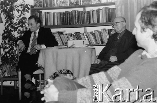 Spotkanie Rady Sygnatariuszy Ruchu Obrony Praw Człowieka i Obywatela w mieszkaniu Kazimierza Janusza; siedzą od lewej: Marian Gołębiewski, Wojciech Ziembiński.