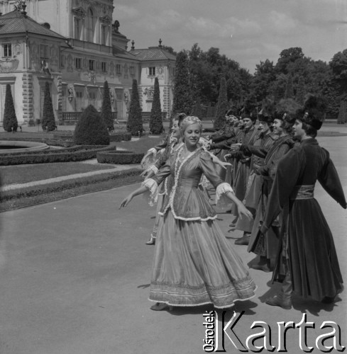 Państwowy Zespół Ludowy Pieśni i Tańca „Mazowsze” im. Tadeusza Sygietyńskiego w Ogrodzie w Wilanowie. W tle Pałac w Wilanowie.