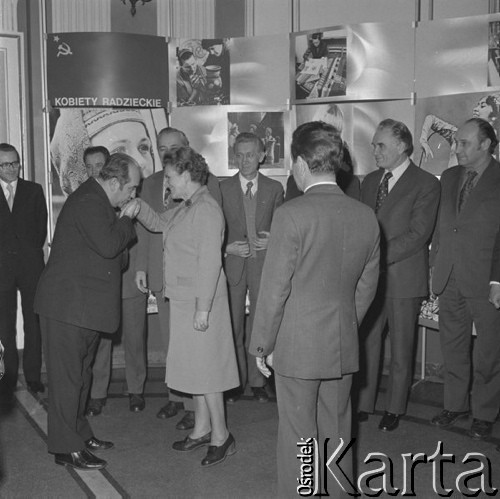 Mecz Lekkoatletyczny Polska - Związek Radziecki na Stadionie Dziesięciolecia, sędziowie siedzą na podwyższeniu.