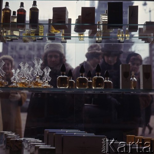Klientki zaglądają przez szybę do sklepu kosmetycznego.