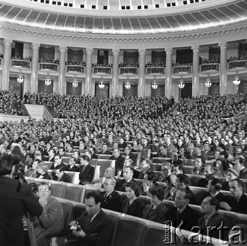 Członkowie rządu na wiecu w Sali Kongresowej po powrocie polskiej delegacji z podróży do Moskwy.