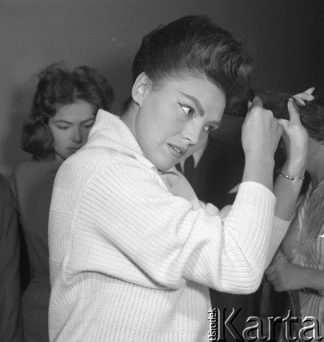 Radziecka modelka prezentuje sukienkę z kolekcji Mody Polskiej.