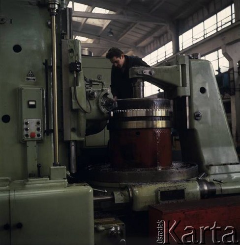 Warszawskie Zakłady Budowy Urządzeń Przemysłowych im. Ludwika Waryńskiego, pracownik w hali produkcyjnej.