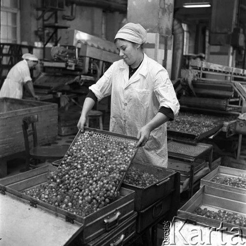Zakłady Przemysłu Cukierniczego im. "22 Lipca" (dawniej E. Wedel), pracownice ważą i pakują czekoladki do pudełek.