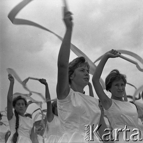 Obchody 15-o lecia PRL, I sekretarz KC KPZR Nikita Chruszczow wysiadający z samolotu na lotnisku Okęcie.