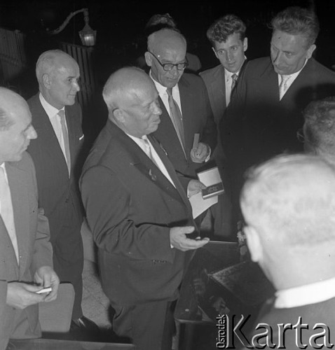 Obchody piętnastolecia PRL. Bankiet na cześć radzieckiej delegacji, na zdjęciu: Władysław Gomułka i Nikita Chruszczow.
