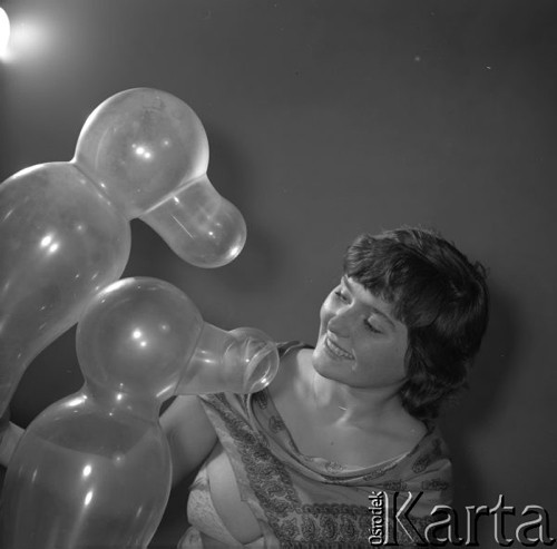Sesja zdjęciowa z modelką na okładkę noworocznego numeru tygodnika "Przyjaźń" - dziewczyna z balonikami.