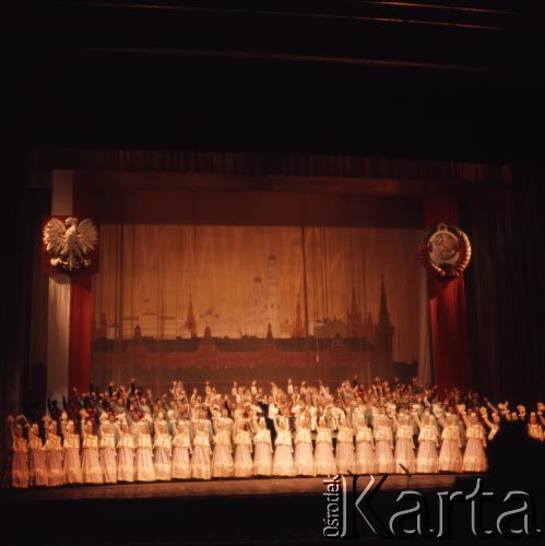 Dni Kultury Radzieckiej, koncert galowy w Sali Kongresowej Pałacu Kultury i Nauki. Wykonawcy na scenie.